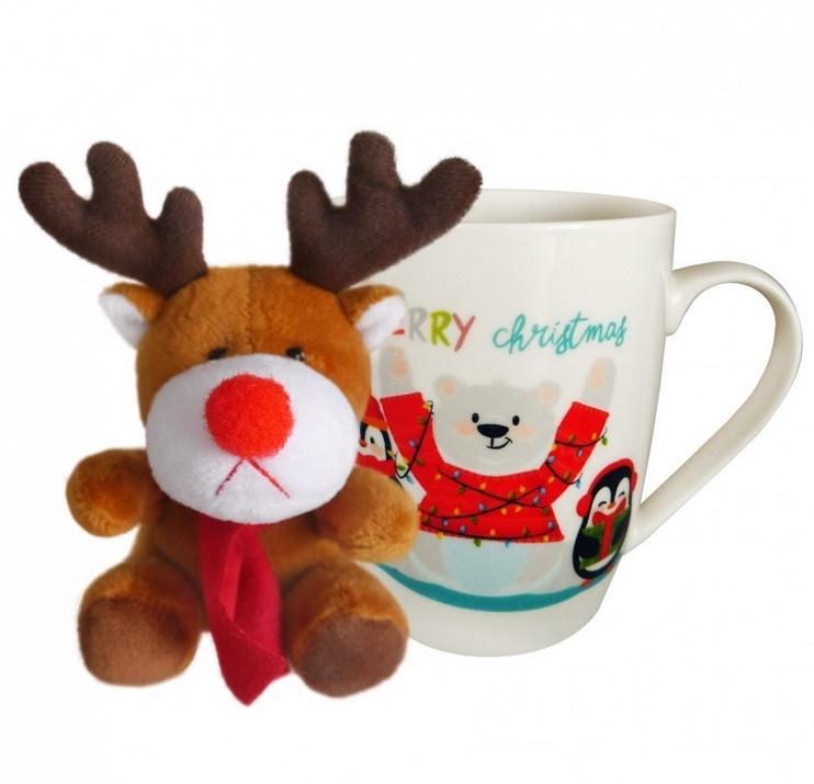 Kubek świąteczny z maskotką 380 ml, pudełko ozdobne