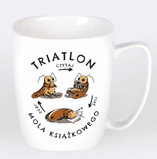 Czytaj. Śpij. Jedz. Dementujemy popularny stereotyp, jakoby MÓL KSIĄŻKOWY był organizmem skomplikowanym. Cykl życia tego gatunku składa się tylko z trzech faz, wśród których najbardziej intensywną jest faza pierwsza – CZYTAJ. Kubek TRIATLON MOLA KSIĄŻKOWEGO to idealny prezent dla książkoholika, który każdą wolną chwilę spędza na pochłanianiu ulubionej literatury. Kubek z porcelany Pojemność: 380 ml Pojemność użytkowa: 360 ml Zapakowany w szykowny kartonik Idealny prezent dla mola książkowego Nadruk po dwóch stronach kubka, logo na spodzie Można myć w zmywarce