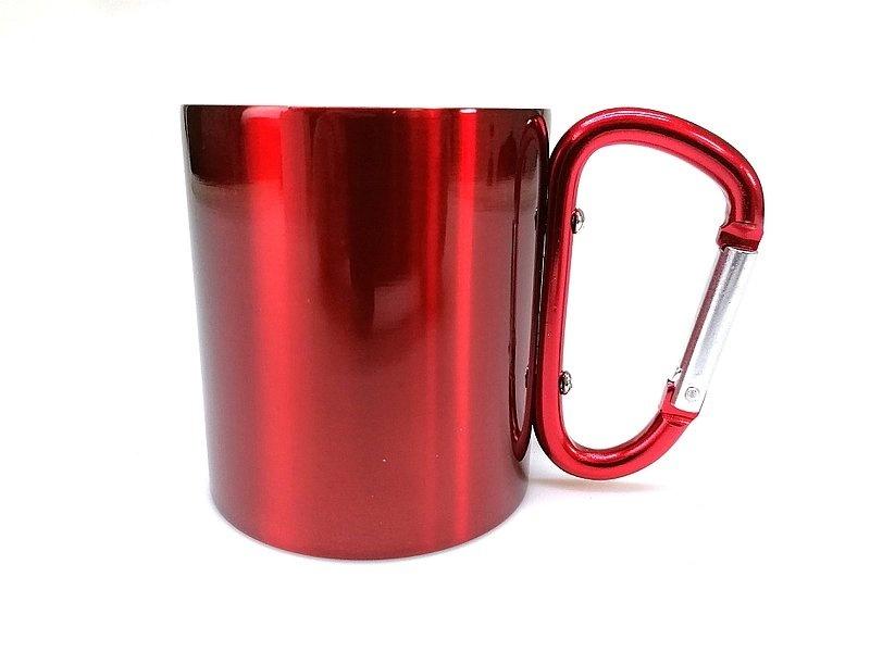kubek metalowy, turystyczny, z karabińczykiem, czerwony; 8x7cm