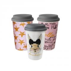 Kubek porcelanowy z silikonową przykrywką. Nowoczesne wzornictwo. Świetnie nadaje się do szkoły czy pracy. Idealny na poranną kawę.