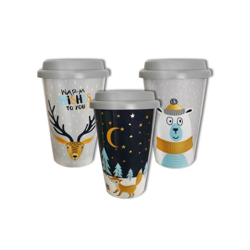 Kubek z przykrywką Świąteczny 400ml Jeleń , Lis, Niedźwiedź, wysyłany losowo.