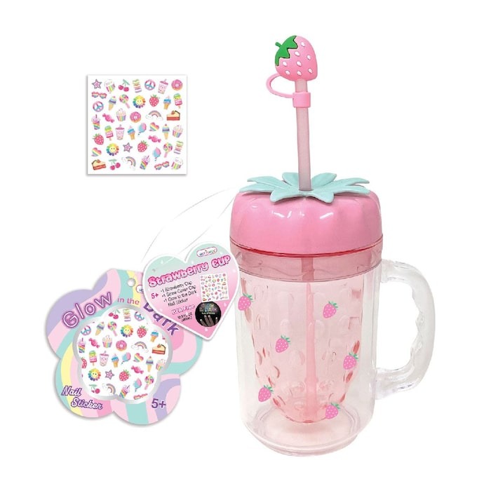 Kubek ze słomką i naklejkami truskawka
