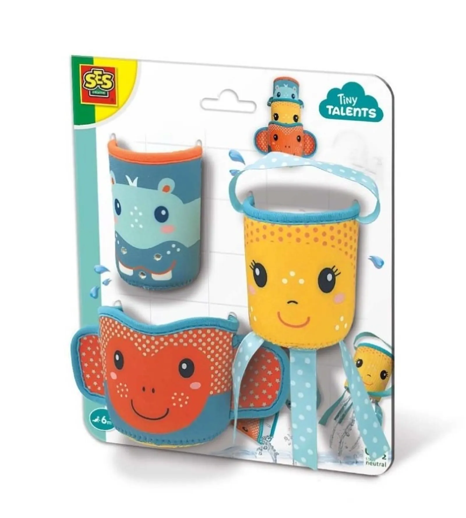 Świetna zabawa pod prysznicem lub w wannie! Te zabawne kubki kąpielowe w kształcie zwierzątek można wykorzystać do nalewania, spryskiwania i zabawy. Kubki kąpielowe są wykonane z materiału neoprenowego, który jest również używany do produkcji takich przedmiotów jak pianki. Dzięki temu są wyjątkowo wytrzymałe! Trzy kubki mają różne rozmiary i można je układać jeden na drugim. Plusk, chlapanie i uśmiechy!