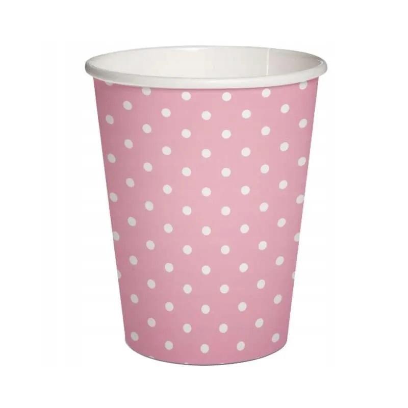 Kubki papierowe eko Różowe w kropki 250ml 10szt