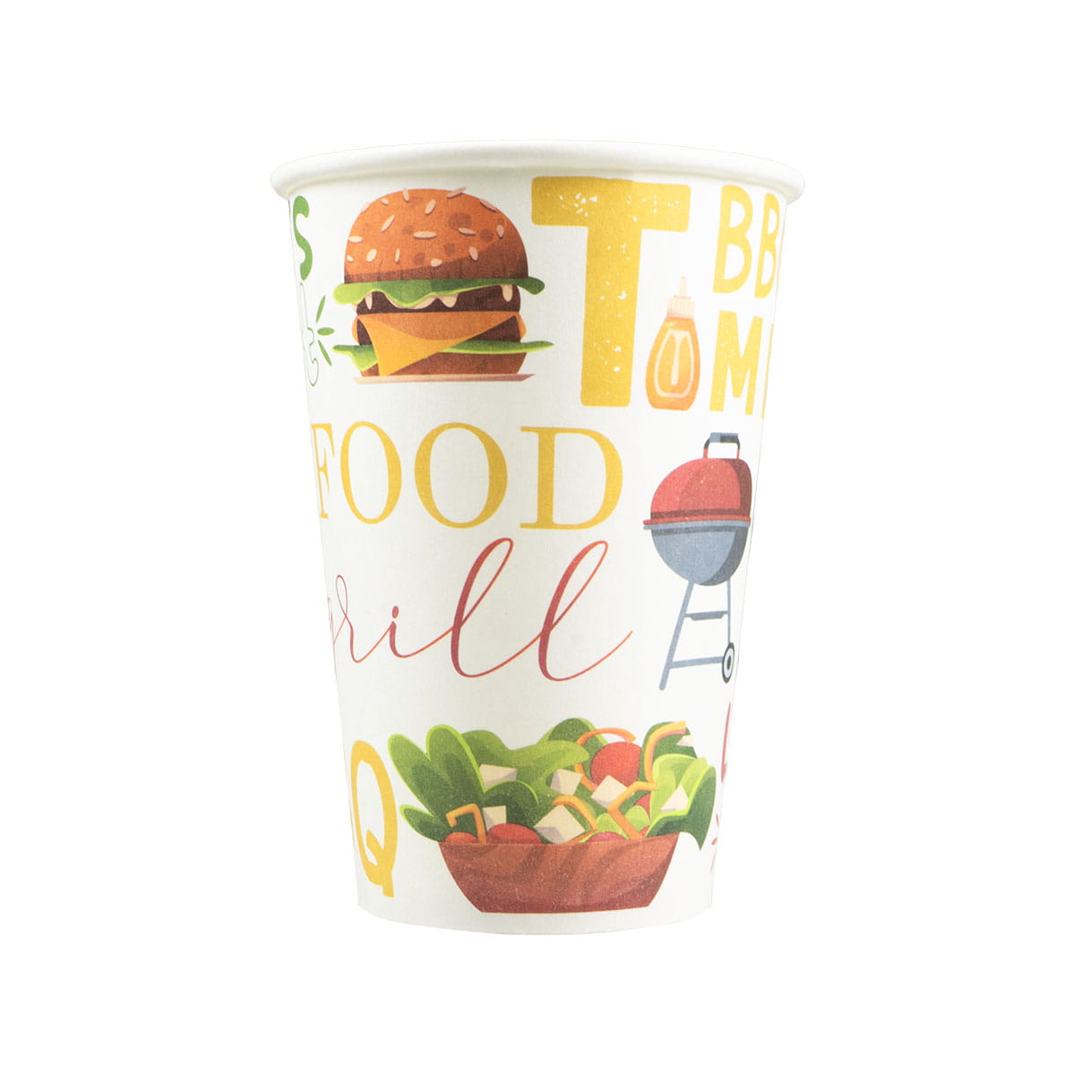Kubki papierowe z uniwersalnym nadrukiem w zabawny motyw grilla. Na kubeczkach znajdują się grafiki podkreślające temat grilla. Idealne na urodziny, kinderbale, grill lub garden party i imprezy plenerowe. Wykonane w technologii, dzięki której nie rozmiękają. Zapewniają komfort i bezpieczeństwo użytkowania. Stosować zgodnie z przeznaczeniem. Artykuł jednorazowego użytku. Kubki o maksymalnej pojemności 200 ml. W opakowaniu znajduje się 8 sztuk.