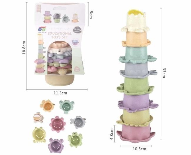 Odkryj fantastyczny zestaw edukacyjnych kubeczków do układania, stworzony z myślą o rozwijającej się wyobraźni i zdolnościach Twojego dziecka. Ten uroczy komplet składa się z ośmiu kubeczków w pastelowych, przyjemnych dla oka kolorach, z których każdy zdobiony jest motywem innego morskiego zwierzątka, takiego jak żółw czy krab. Jest to idealna zabawka dla dzieci już od szóstego miesiąca życia. Kubeczki mają różną wielkość, co pozwala na układanie ich w wysoką, imponującą wieżę lub na chowanie jednego w drugim, co w naturalny sposób wprowadza dziecko w świat pojęć takich jak wielkość i kolejność. Zabawa tym zestawem wspiera kluczowe etapy rozwoju dziecka, stymulując koordynację wzrokowo-ruchową, ćwicząc precyzję ruchów i chwytanie, a także pomagając w nauce rozpoznawania barw. Dzięki otworom w dnie niektóre kubeczki są świetne do przelewania wody, co czyni ten zestaw nieocenionym towarzyszem podczas kąpieli lub letnich zabaw na świeżym powietrzu. Wykonane z bezpiecznego, trwałego i nietoksycznego materiału, kubeczki są łatwe do czyszczenia i wytrzymają wiele godzin aktywnej zabawy. To przemyślany prezent, który łączy w sobie radość z zabawy i walory edukacyjne.