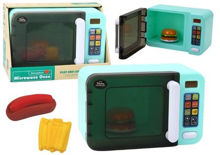 Kuchenka Mikrofalowa Mikrofala Zabawkowa Turkusowa Dodatki Fantastyczna Kuchenka Mikrofalowa, która przenosi zabawę kulinarną Twojego dziecka na zupełnie nowy poziom! Nasza kuchnia mikrofalowa jest nie tylko zabawką - to interaktywne doświadczenie, które ożywia domową zabawę. Po naciśnięciu przycisku, kuchenka rozpoczyna magiczną symulację gotowania. Podświetlająca się wnętrze sprawia, że wygląda jak prawdziwa mikrofala, a ruchomy talerz dodaje realizmu. Dziecko może nawet otworzyć drzwiczki, aby umieścić swoje danie do podgrzania, a po upływie czasu wyjąć gotowy posiłek. W zestawie znajdują się również zabawkowe jedzenie - hamburger, frytki i hot-dog, które dodają jeszcze więcej realności do zabawy. Ta kuchenka mikrofalowa to nie tylko źródło rozrywki, ale także narzędzie do nauki i rozwijania wyobraźni Twojego dziecka. Podczas zabawy, maluch może ćwiczyć umiejętności społeczne, udając, że gotuje dla swoich przyjaciół lub rodziny, jednocześnie ucząc się o zdrowym odżywianiu i codziennych czynnościach domowych. Kuchenka mikrofalowa posiada kilka programów, które umożliwiają symulację różnych funkcji. Dzięki nim dziecko może ustawić na jaki czas chce podgrzać zabawkowe jedzenie. Wykonana z najwyższą precyzją i z wysokiej jakości materiałów, nasza kuchenka mikrofalowa zapewni długotrwałą i bezpieczną zabawę. To nie tylko zabawka, ale także element wyposażenia dziecięcej kuchni, który może posłużyć do wielu godzin kreatywnej zabawy i nauki. Mikrofala zasilana jest na baterie 3x 1.5V AA, które są elementem zestawu. Wymiary mikrofali: 26,5cm x 17cm x 13cm Wymiary opakowania: 28cm x 19cm x 16,5cm Posiada certyfikat CE, ponadto jest zgodny z normą EN71. Przeznaczony dla dzieci powyżej 3 roku życia.