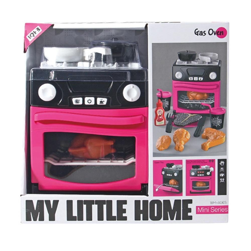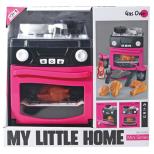 Kuchenka z dźwiękami i światłem. Zestaw zawiera również plastikowe kawałki ciasta, talerzyk, sztućce, pojemniki ze słomką na wodę lub sok oraz buteleczkę z ketchupem. Wymaga baterii: 3xAA (niedołączone) Wymiary opakowania: 26 x 11.4 x 25 cm