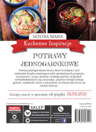 Kuchenne Inspiracje Siostry Marii to seria tematycznych poradników kulinarnych. Każdy tom zawiera ok. 50 receptur na zdrowe i łatwe do przygotowania potrawy. Przepisy siostry Marii nie wymagają specjalnych umiejętności, z pewnością znajdą wielu amatorów, a wszystkie dania można bez trudu przygotować w domowych warunkach z ogólnie dostępnych produktów. Dzięki dokładnym wskazówkom opatrzonym pięknymi zdjęciami uda się przyrządzić każdą potrawę!