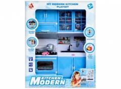 Zestaw zawiera: piekarnik, zlew, 4 szafki oraz podstawowe akceoria kuchenne: garnki, zastawę oraz przyrządy kucharskie. Szafki oraz piekarnik posiadają funkcję otwierania drzwiczek. Zabawka wymaga zasilania 3 bateriami AG13 - załączonymi do zestawu. Produkt odpowiedni dla dzieci w wieku: 3+.