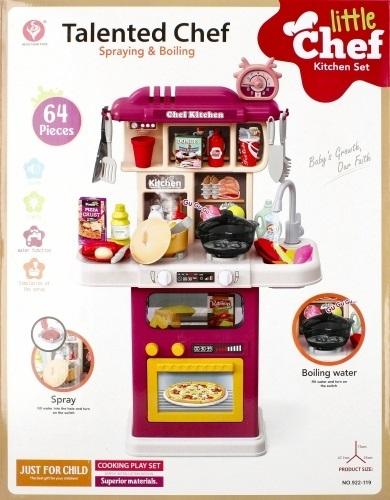 Zalety produktu: posiada efekty dźwiękowe oraz świetlne, płyta wydaje odgłosy gotowania oraz posiada efekt pary dzięki czemu imituje proces gotowania, kurki do sterowania kuchenką są ruchome, zlew posiada kran z którego leje się woda, kuchenka posiada otwierane drzwi piekarnika, składa się z 64 elementów. Kuchnia MEGA CREATIVE to propozycja ciekawej i wciągającej zabawy dla dzieci, które chętnie naśladują zajęcia dorosłych i w bezpieczny sposób mogą bawić się w małych kucharzy. Ciekawy i nowoczesny design, a także ładna i żywa kolorystyka to tylko niektóre cechy tej kuchni! Zawartość zestawu: kuchnia, 2 x garnki z pokrywką, patelnia, 3 x talerze, kubek z rurką, kubek na napój, wafelki do lodów, szczypce, chochla, nóż, sztućce, imitacja warzyw i produktów spożywczych. Całość wykonana z plastiku oraz kartonu. Wymiary/waga/baterie: wymiary produktu (dł. x wys. x gł.) [cm]: 48x75x25, wymiary opakowania (dł. x wys. x gł.) [cm]: 47x60x11, waga produktu bez opakowania [kg]: 1,74 kg, waga produktu w opakowaniu [kg]: 2,28 kg, wymaga zasilania bateriami 4 x AALR06- nie załączono do zestawu. Zabawka przeznaczona dla dzieci w wieku: 3+. Pakowana w kartonik.