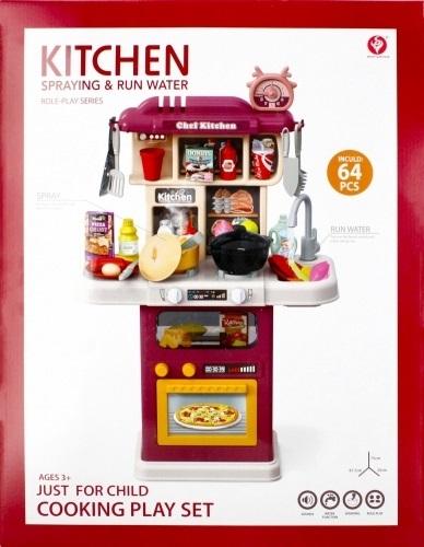 Zalety produktu: posiada efekty dźwiękowe oraz świetlne, płyta wydaje odgłosy gotowania oraz posiada efekt pary dzięki czemu imituje proces gotowania, kurki do sterowania kuchenką są ruchome, zlew posiada kran z którego leje się woda, kuchnia posiada otwierane drzwi piekarnika, składa się z 64 elementów. Kuchnia MEGA CREATIVE to propozycja ciekawej i wciągającej zabawy dla dzieci, które chętnie naśladują zajęcia dorosłych i w bezpieczny sposób mogą bawić się w małych kucharzy. Ciekawy i nowoczesny design, a także ładna i żywa kolorystyka to tylko niektóre cechy tej kuchni! Zawartość zestawu: kuchnia, 2 x garnki z pokrywką, patelnia, 3 x talerze, kubek z rurką, kubek na napój, wafelki do lodów, szczypce, chochla, nóż, sztućce, imitacja warzyw i produktów spożywczych. Całość wykonana z plastiku. Wymiary/waga/baterie: wymiary produktu (dł. x wys. x gł.) [cm]: 48x75x25, wymiary opakowania (dł. x wys. x gł.) [cm]: 47x60x11, waga produktu bez opakowania [kg]: 1,70 kg, waga produktu w opakowaniu [kg]: 2,25 kg, wymaga zasilania bateriami 4 x AALR06- nie załączono do zestawu. Zabawka przeznaczona dla dzieci w wieku: 3+. Pakowana w kartonik.