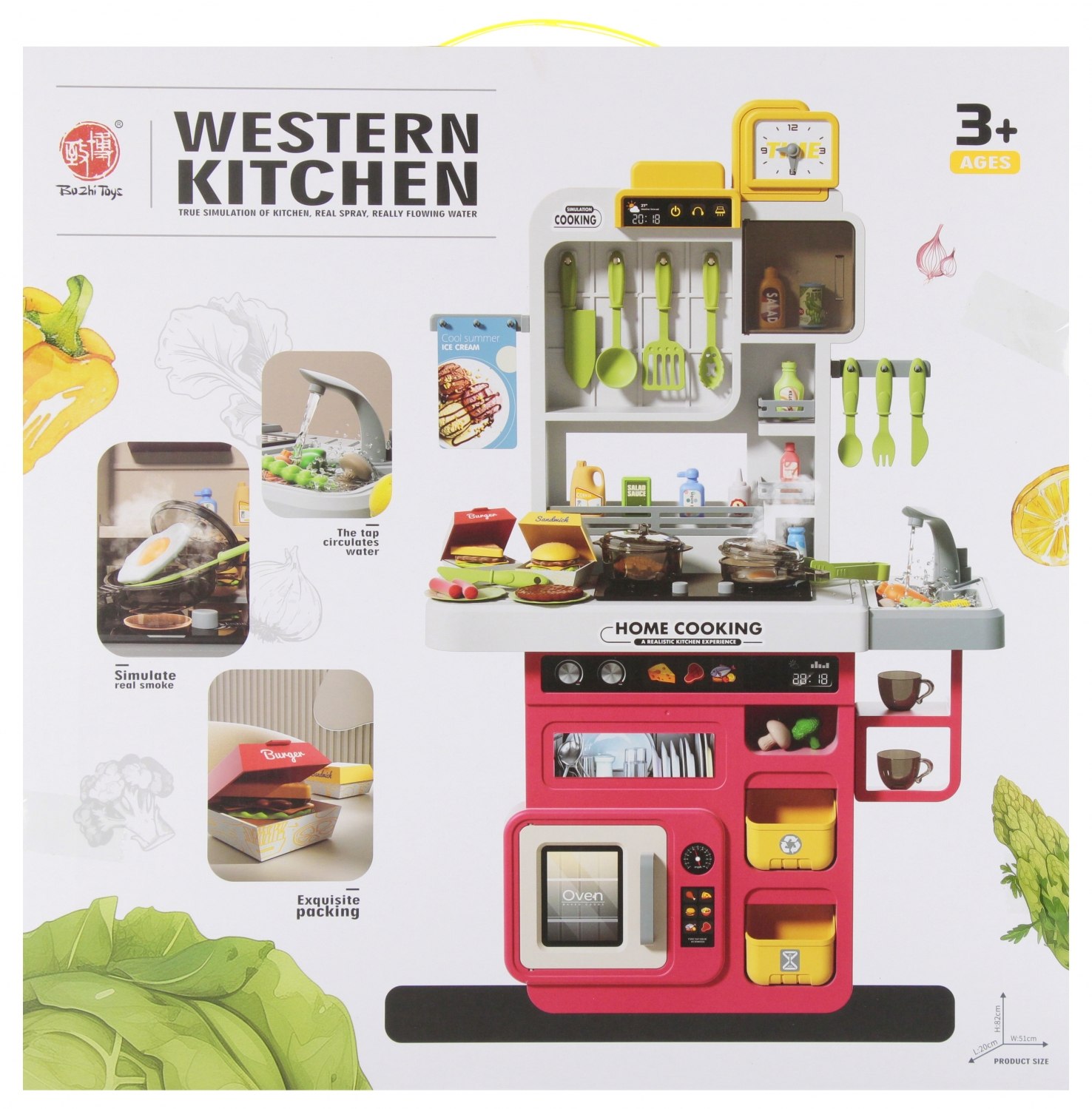 Funkcjonalny kran przelewowy. Kuchnia na baterie z funkcją pary i akcesoriami to zabawka, która łączy edukację z radosną zabawą.