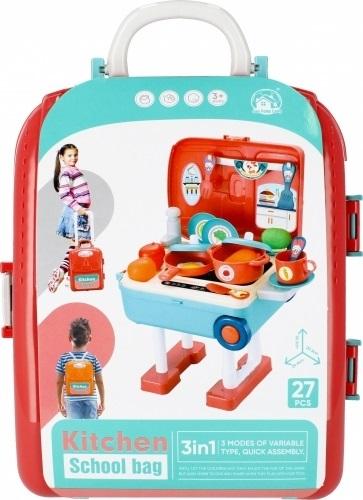 Zalety produktu: Kuchnia MEGA CREATIVE to propozycja ciekawej i wciągającej zabawy dla dzieci, które chętnie naśladują zajęcia dorosłych i w bezpieczny sposób mogą wcielić się w role małych kucharzy. Aż 27 części, ciekawy i nowoczesny design, a także ładna i żywa kolorystyka to tylko niektóre zalety tej kuchni! Kuchnia posiada kranik, gdzie po uzupełnieniu pojemnika niewielką ilością wody z kraniku poleci woda. Zawartość zestawu: walizka na kółkach/ plecak/kuchenka, garnek z pokrywką, patelnia z pokrywką, kubeczek, 4x talerzyk, kpl. sztućców, podbierak, 1x jajko sadzone, 4x warzywa/owoce. Całość wykonana z plastiku, wszystkie produkty są imitacja prawdziwych!. Wymiary/waga/baterie: Wymiary produktu (dł. x wys. x gł.) [cm]: 39x24x14, waga produktu (kg.) 0,54 kg. Wymiary produktu w opakowaniu (dł. x wys. x gł.) 19x25x12, waga opakowania (kg) 0,58 kg. Przeznaczona dla dzieci w wieku: 3+. Nie wymaga zasilania bateriami. Całość zapakowana w wygodną walizkę na kółkach z rączką i w banderoli.