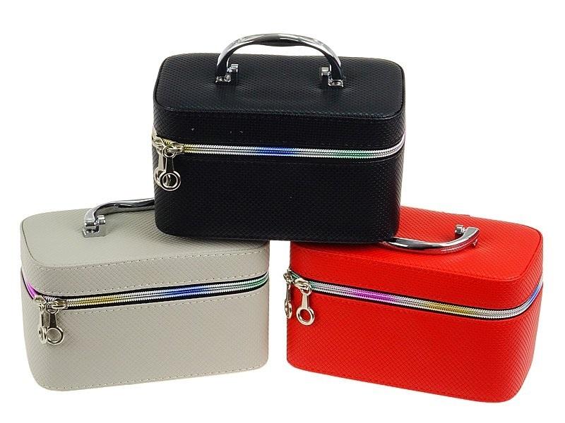Kuferek S, z lusterkiem, zapinany na zamek, mix 3 kolorów, szary, czarny, czerwony; 19x11x10cm