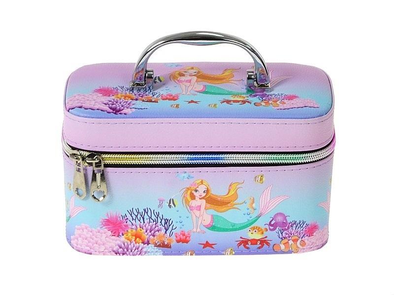 Kuferek S z lusterkiem, wzór syrenka, zapinany na zamek; 19x12x11cm