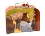 Kartonowy kuferek szkolny Horse My Friend z metalowym zamknięciem i rączką.