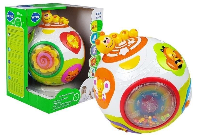 Edukacyjna Kula Do Raczkowania Turlająca Kula to zabawka, która powinna znaleźć się w pokoju każdego maluszka. Odznacza się nie tylko nowoczesnym designem, rewelacyjnie łączącym się z wystrojem pokojów dziecięcych, ale i prostotą, gwarantującą długą i rozwijającą zabawę. Zabawka została wykonana z atestowanego materiału najwyższej jakości, co odpowiada za komfort i bezpieczeństwo zabawy. Zabawka jest bardzo lekka, natomiast jej konstrukcja posiada opływowy kształt, co tylko ułatwia zabawę. Kula zachęca do siebie małymi detalami, posiada wiele świecących ruchomych elementów, oraz przyciski w różnych kształtach ze zwierzątkami. Kula toczy się przez co jest idealnym rozwiązaniem dla malucha w okresie raczkowania. Przyciski ze zwierzatkami uruchamiaja wesołe dźwięki oraz słowa. Przeźroczyste elementy świecą oraz obracają się. Dziecięca zabawka przeznaczona jest dla wszystkich maluchów powyżej 6. miesiąca życia.Posiada certyfikat CE, który gwarantuje bezpieczną zabawę. Zabawka zapakowana jest w estetyczny, kolorowy kartonik - idealnie nadaje się na prezent. Średnica Kuli: 16 cm Wymiary Opakowania : 17 cm x 23 cm x 17 cm