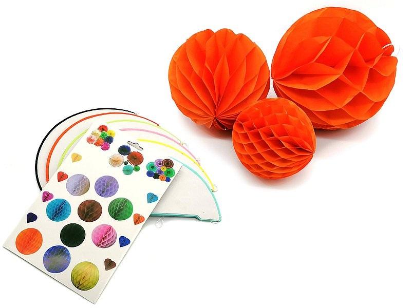 Zestaw 6 kul papierowych - girlanda, różne rozmiary: śred. 15, 20, 25cm; 27,5x18cm, PPB zestaw 10 czapeczek urodzinowych, złote i srebrne; 20x14cm, PPB