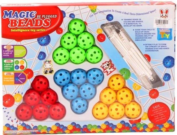 Odkryj zabawkę, która udowadnia, że najlepsza nauka płynie prosto z radosnej twórczości. Magic Beads to coś więcej niż zwykłe klocki - to kompleksowy system edukacyjny zaprojektowany z myślą o małych odkrywcach, którzy uwielbiają tworzyć coś z niczego. Sercem zestawu są kolorowe kulki z precyzyjnie rozmieszczonymi otworami, które pełnią rolę inteligentnych łączników. W połączeniu z zestawem patyczków o różnych długościach, dają one niemal nieograniczone możliwości kreowania przestrzennych obiektów, od prostych figur geometrycznych po zaawansowane konstrukcje architektoniczne.
