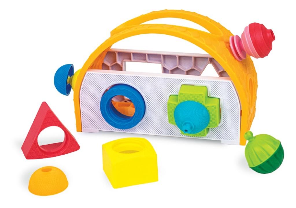 Koszyczek Sortowniczek Lalaboom, to zabawka sensoryczna, która dostarcza najmłodszym wiele zróżnicowanych wrażeń dotykowych ze względu na różne faktury poszczególnych elementów. Zabawka daje możliwość ćwiczenia ruchów obrotowych nadgarstka. Umożliwia zabawę w dopasowywanie kształtów oraz rozwija umiejętności manualne i zręcznościowe - ćwiczenie równowagi. Białe ścianki Sortowniczka mogą również stanowić odrębną zabawkę. Górny element zabawki może pełnić funkcję uchwytu, a sam Koszyczek można wykorzystać jako pojemnik na kulko - klocki.