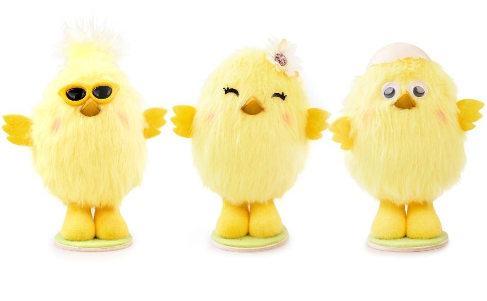 Opis: wym. kurczaczka: 9 x 7 x 12 cm, 3 wzory do wyboru, materiał: tekstylia i plastik