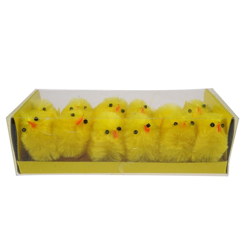 Małe, żółte kurczaczki dekoracyjne. Idealne jako ozdoba do koszyczka lub na wielkanocny stół. Wielkość 2,5 cm. Pakowane po 12 sztuk.