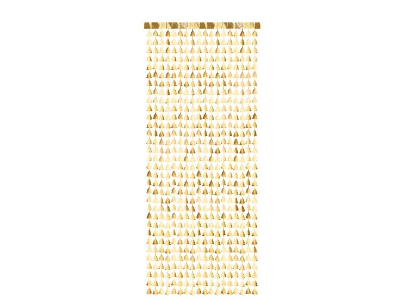 Kurtyna - Choinki wykonana z folii w kolorze złotym, mocowana na taśmę dwustronną przyczepioną do girlandy, szerokść ok. 100 cm, długość ok. 245 cm.