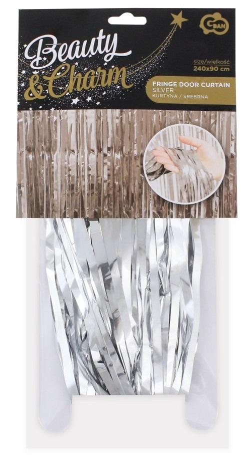 Kurtyna dekoracyjna srebrna, 90x240 cm Materiał: folia Kolor: srebrny Wymiary: 90 x 240 cm Kolekcja: Beauty&Charm Mocowanie: samoprzylepna taśma Producent: Godan S.A. Lśniąca, foliowa kurtyna dekoracyjna w srebrnym kolorze. Kurtynę łatwo i wygodnie zamocujesz za pomocą taśmy przylepnej znajdującej się u góry. Wystarczy odkleić papierek zabezpieczający i przykleić kurtynę w wybranym miejscu. Mocny, a zarazem bezpieczny klej zapewni Ci trwałe mocowanie kurtyny, a jednocześnie bezproblemowy demontaż. Dzięki odpowiedniej długości 240 cm dopasujesz kurtynę do każdych drzwi, ściany i innych miejsc. Jednocześnie jest to optymalna długość, sprawiająca, że kurtyna nie będzie się plątać pod nogami i zbierać kurzu z podłogi. Kurtyna dekoracyjna to efektowna ozdoba na urodziny, domowe party, jak i zjawiskowa ścianka do robienia zdjęć na ślubie, wieczorze panieńskim i innych imprezach. Użyj jej, żeby zasłonić część mieszkania, która "psuje" Ci wygląd (np. z powodu remontu) lub zawieś w drzwiach, żeby zrobić wrażenie na swoich znajomych. Efekt "WOW!" gwarantowany!