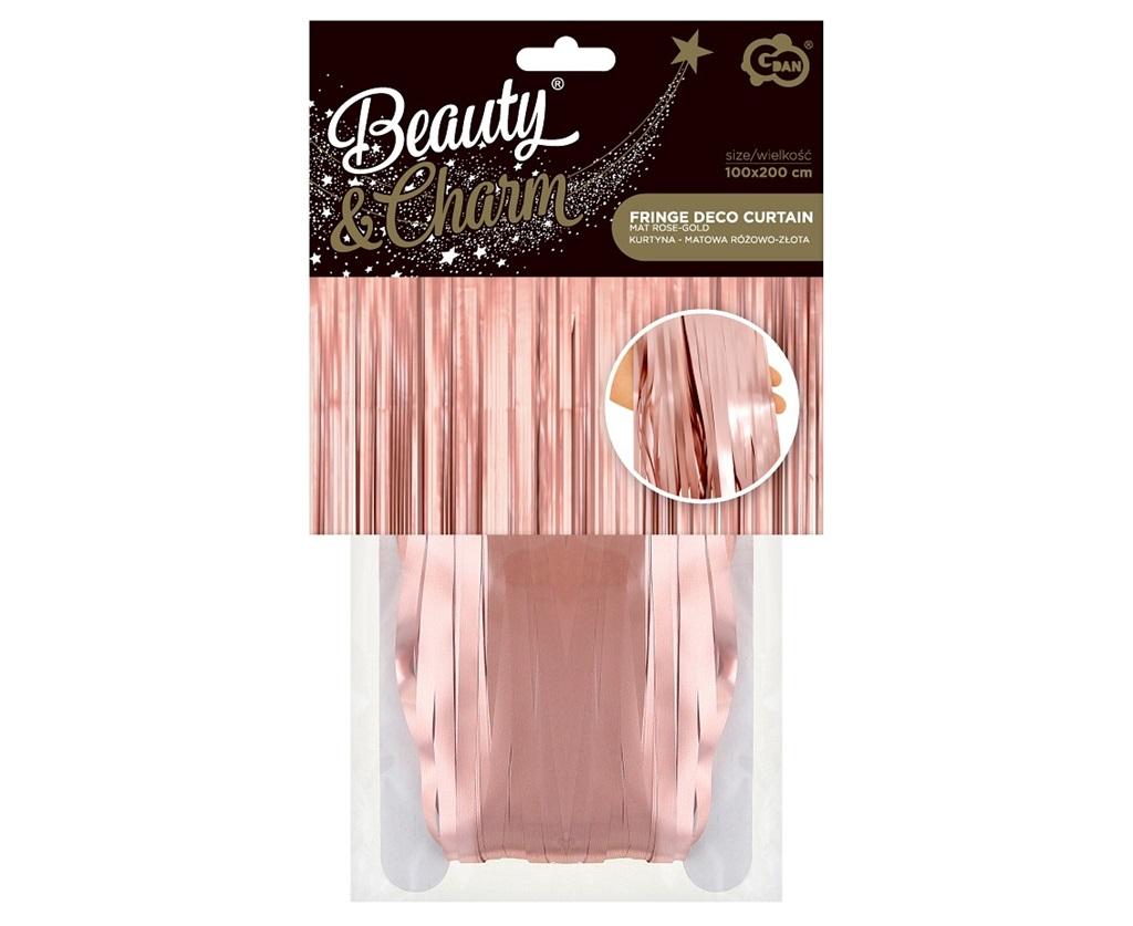 Kurtyna matowa różowo-złota, 100x200 cm Wymiary: 100 x 200 Kolor: różówo-złoty Materiał: folia Ilość sztuk w opakowaniu: 1 Producent: Godan S.A. Kurtyna dekoracyjna wykonana z cienkich paseczków. Idealnie sprawdzi się jako ozdoba na wszelkich imprezach lub jako ciekawe tło do zdjęć.