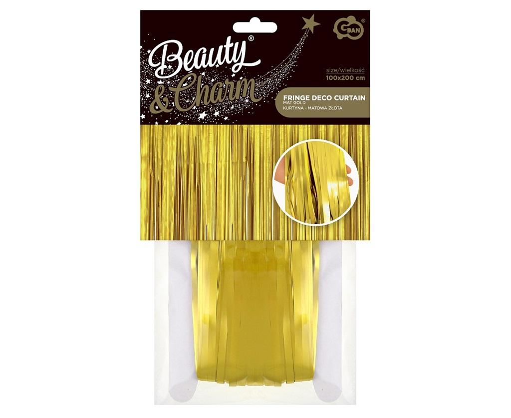 Kurtyna matowa złota, 100x200 cm Wymiary: 100 x 200 Kolor: złoty Materiał: folia Ilość sztuk w opakowaniu: 1 Producent: Godan S.A. Kurtyna dekoracyjna wykonana z cienkich paseczków. Idealnie sprawdzi się jako ozdoba na wszelkich imprezach lub jako ciekawe tło do zdjęć.