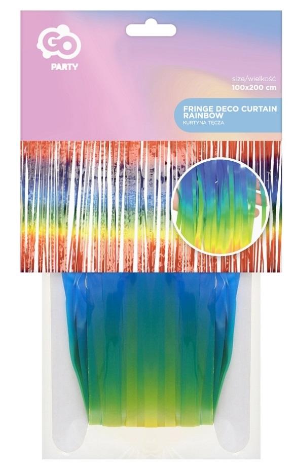 Kurtyna Tęcza, 100x200 cm Wymiary: 100 x 200 cm Kolor: wielokolorowy Materiał: folia Ilość sztuk w opakowaniu: 1 Producent: Godan S.A. Kurtyna dekoracyjna wykonana z cienkich paseczków. Idealnie sprawdzi się jako ozdoba na wszelkich imprezach lub jako ciekawe tło do zdjęć.