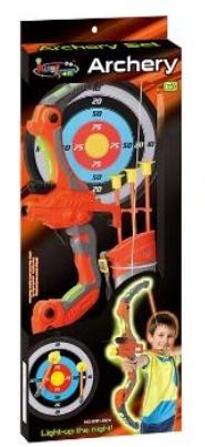 W zestawie: kusza z celownikiem laserowym, kołpak, 3 bezpieczne strzały, tarcza.