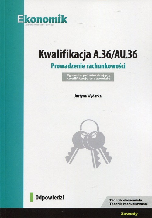 Odpowiedzi do książki Kwalifikacja A.36/AU.36. Prowadzenie rachunkowości. Egzamin potwierdzający kwalifikacje w zawodzie Odpowiedzi do zadań praktycznych i arkuszy egzaminacyjnych zawierają również klucze do sprawdzania poprawności rozwiązań, zawierające szczegółowe kryteria oceny.