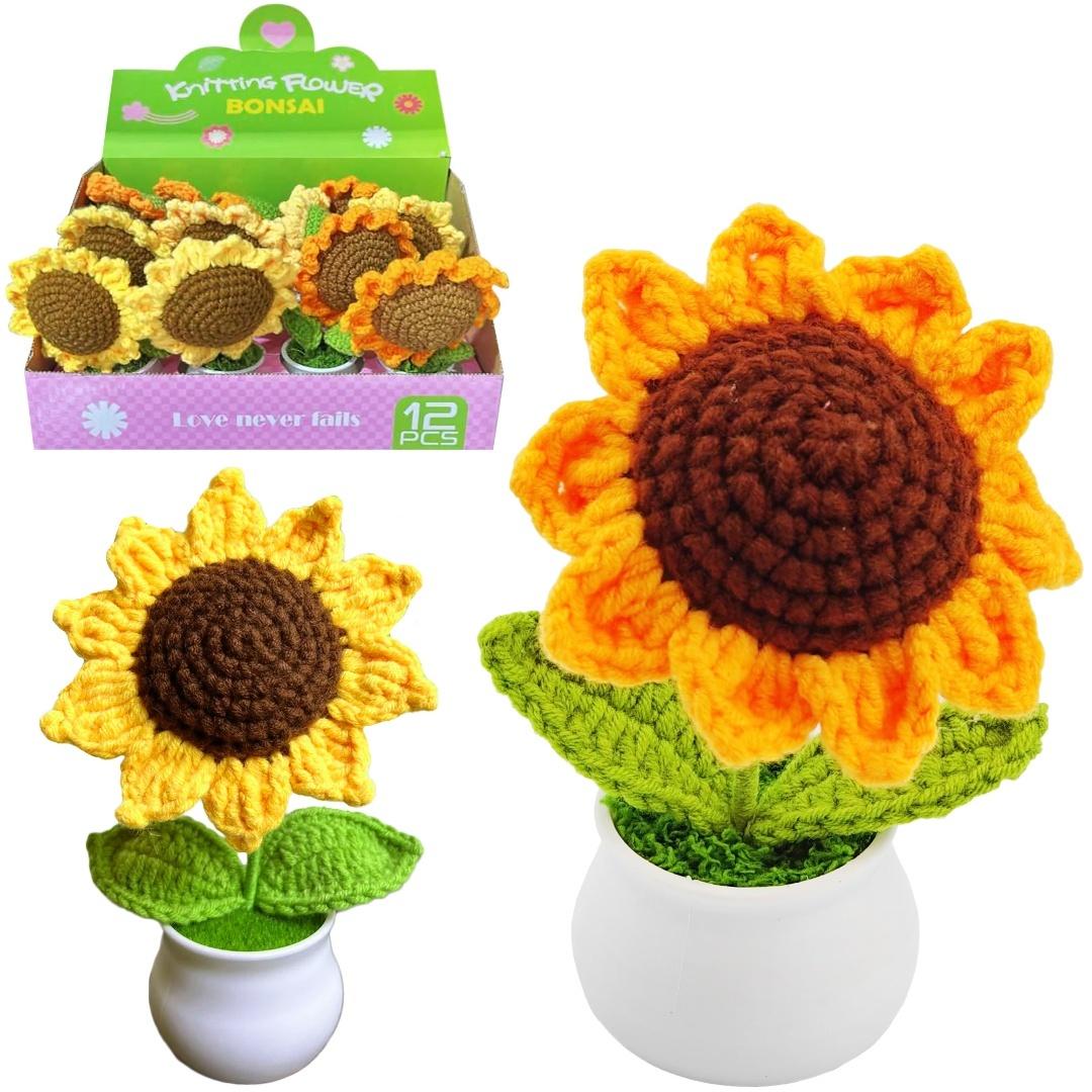 Słonecznik w Doniczce - Ręcznie Dziergana Ozdoba "Knitting Flower Bonsai"