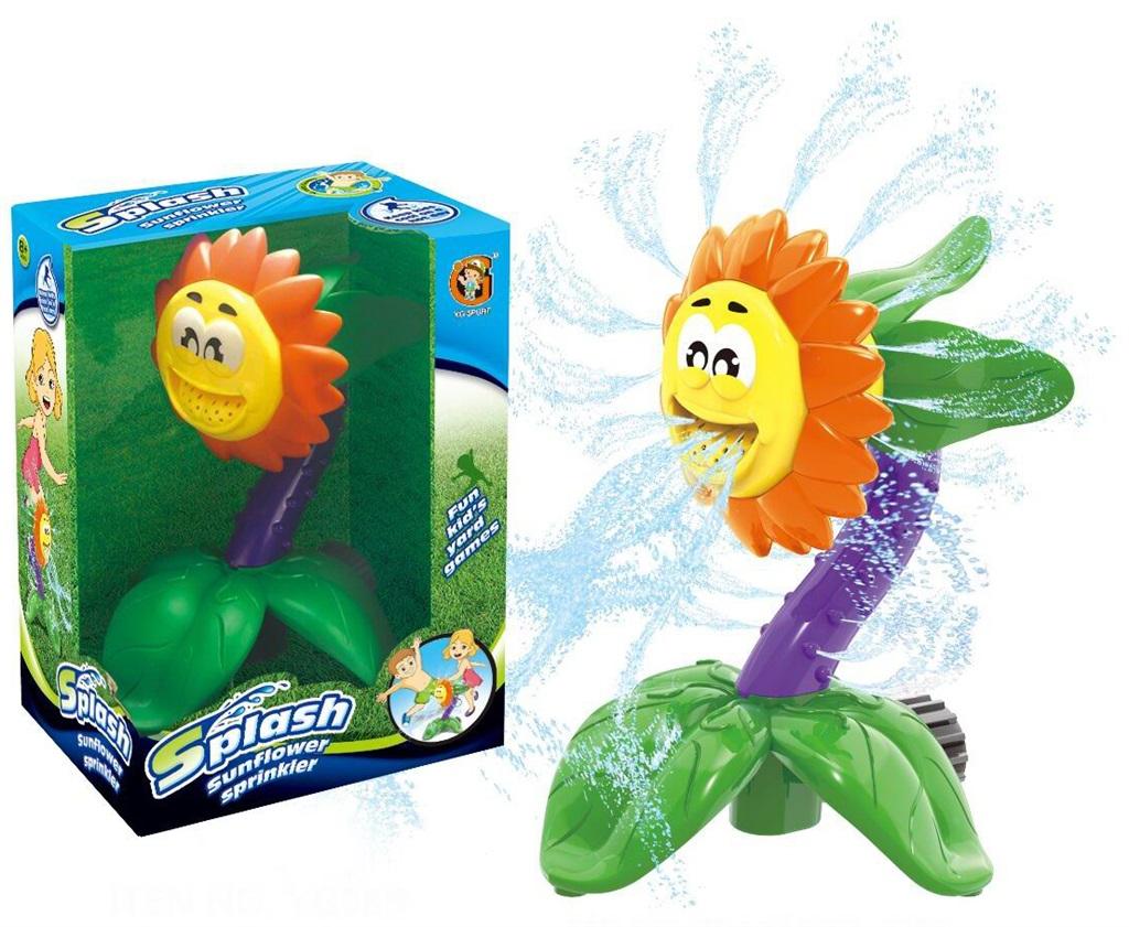 Wesoły kwiatek po dopięciu węża z wodą "tańczy" i pryska wodą bawiące się dzieci.