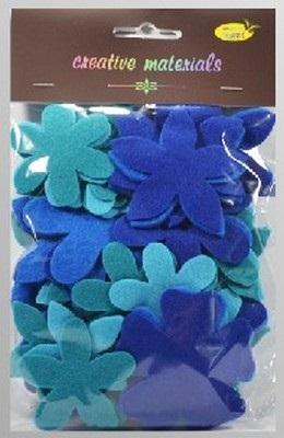 Opakowanie Kwiatki z filcu tonacja niebieska 60szt