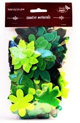 Opakowanie Kwiatki z filcu tonacja zielona 60szt