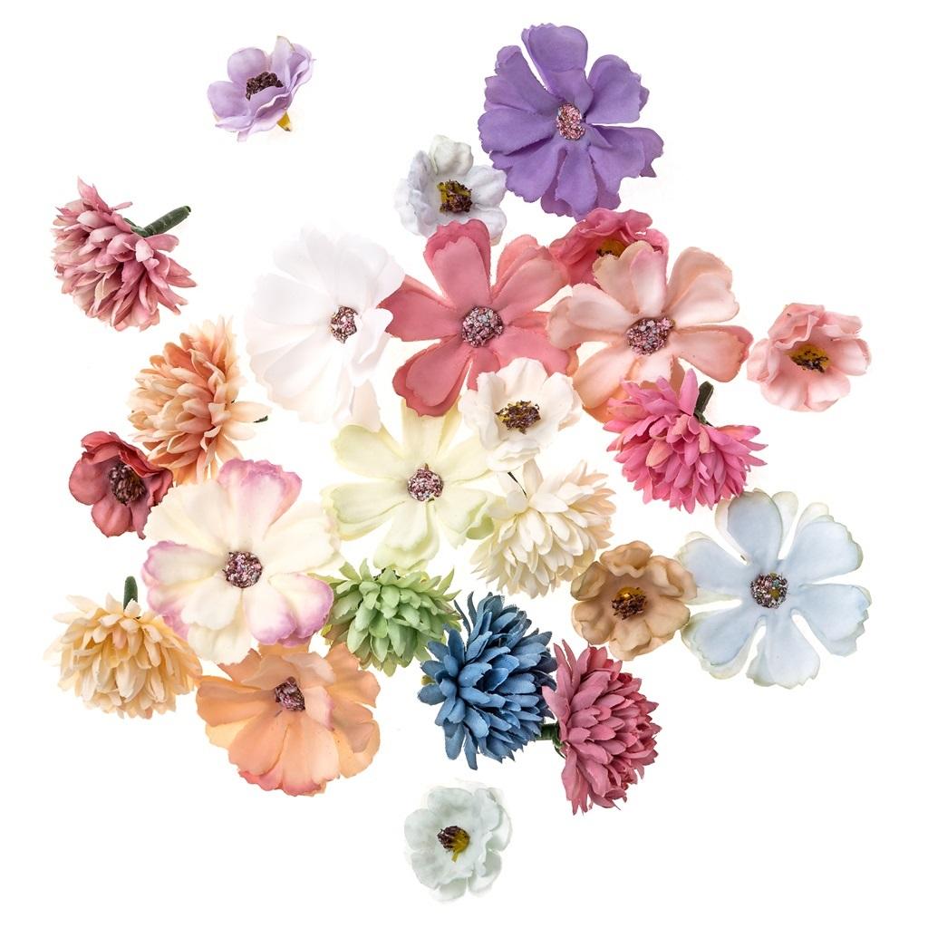 Kwiaty z tkaniny multikolor 3 wzory 24szt