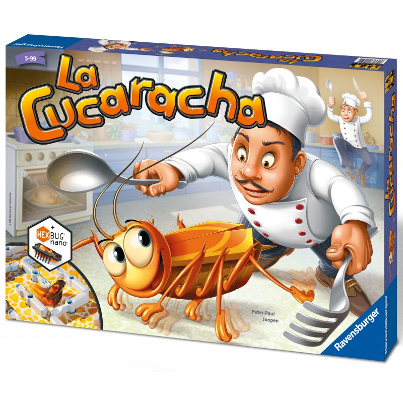 W kuchni jest karaluch! Szybko - kto go złapie? Rzuć kostką i działaj błyskawicznie - użyj sztućców, by zwabić karalucha do swojej pułapki. Gracz, który złapie karalucha pięć razy, wygrywa! Zawartość: - 1 robot Hexbug Nano - plansza z 25 ruchomymi sztućcami - 18 żetonów karaluchów - kostka - 2 pary drzwi - instrukcja Wiek graczy: 5+ Liczba graczy: 2-4 Czas rozgrywki: 15-20 minut
