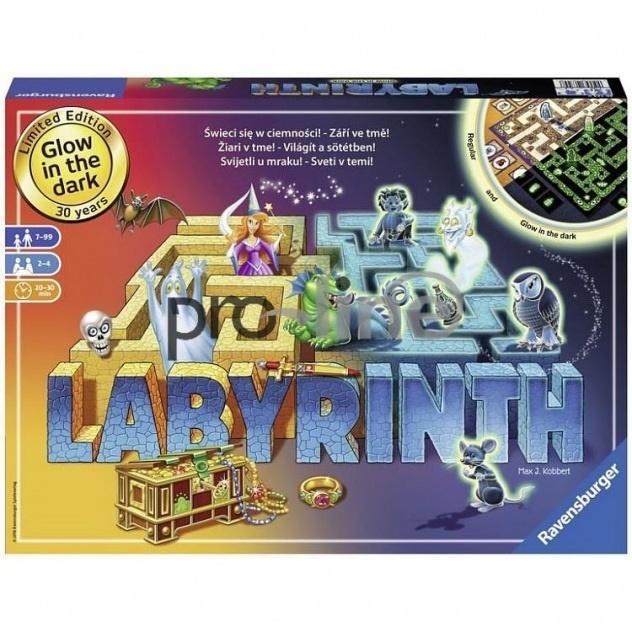 Teraz labirynt z fascynującym efektem świetlnym. Już od 30 lat gra zachwyca miliony graczy. W ciągu dnia możecie grać w ulubioną grę w labirynt, a gdy zapadnie ciemność, szukać tajemniczych nocnych skarbów. Dwie gry w jednej! Zawartość: plansza do gry 34 kwadratowe karty korytarzy 24 karty skarbów 4 figurki 12 kwadratowych kart nocnych skarbów 3 monety Liczba graczy 2-4 Wiek 7+
