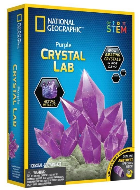 Laboratorium National Geographic to łatwy i przyjemny sposób na wyhodowanie w domu niezwykłego, fioletowego kryształu! Wystarczy, że wymieszasz proszek do hodowli kryształów z wodą i dodasz skałę bazową, a w ciągu zaledwie kilku dni otrzymasz niesamowity kryształ! W tym zestawie znajdziesz też prostą instrukcję i kolorowy podręcznik do nauki. Odkryj fascynujący świat geologii i kryształów. Szybko działający proszek do hodowli fioletowych kryształów pozwala uzyskać je w zaledwie 3 dni. W zestawie: 1 opakowanie proszku do hodowli purpurowych kryształów (95 g) 1 skała bazowa 1 podręcznik z instrukcją
