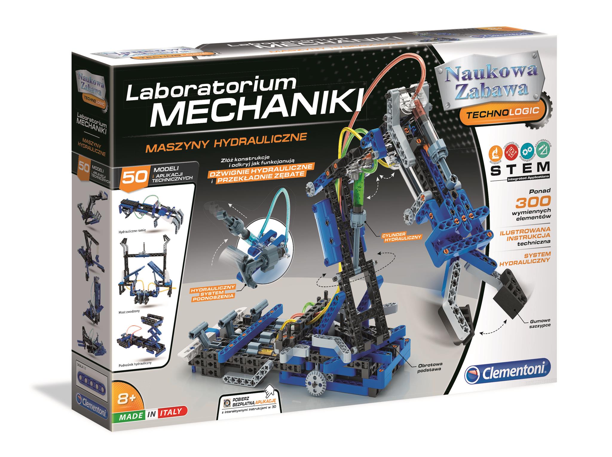 Zestaw naukowy, za pomocą którego można odkrywać tajemnice mechaniki i eksperymentować z dźwigniami, kołami zębatymi i hydraulicznymi systemami podnoszenia. Umożliwia zbudowanie 50 modeli i zastosowań technicznych. Dla dzieci w wieku od 8 lat