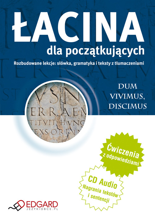Łacina dla początkujących to kurs przeznaczony dla uczniów, studentów oraz wszystkich, którzy chcą samodzielnie poznać podstawy łaciny. Kurs uczy słów, zwrotów i konstrukcji gramatycznych niezbędnych do swobodnego poruszania się w świecie języka łacińskiego. Podręcznik zawiera 12 lekcji uczących łacińskiego słownictwa, najważniejszych sentencji i konstrukcji gramatycznych. W każdej lekcji znajdują się ćwiczenia gramatyczne oraz leksykalne, m.in. uzupełnianie luk w zdaniach, łączenie w pracy, krzyżówki oraz wykreślanki. W książce znajduje się dodatkowo wybór 20 tekstów - fragmentów klasycznych dzieł w języku łacińskim (m.in. Wojna galijska Juliusza Cezara, Metamorfozy Owidiusza, Kronika Galla Anonima). Na końcu książki zamieszczono tabele gramatyczne, pełne tłumaczenie tekstów oraz odpowiedzi do wszystkich ćwiczeń. Część gramatyczna w jasny i przejrzysty sposób objaśnia koniugację i deklinację, użycie zaimków względnych i wskazujących oraz stosowanie czasów (praesens, futurum primum, futurum exactum, perfectum, imperfetum, plusquamperfectum). Przedstawione są również konstrukcje: accusativus cum infinitivo, ablativus absolutus, ablativus comparationis i genetivus partittivus. Zamieszczone w książce teksty ilustrują bogactwo łacińskiej fleksji i składni. Płyta CD Audio (48 min) jest doskonałym uzupełnieniem nauki z podręcznikiem. Nagrania w wykonaniu profesjonalnego lektora pozwalają poznać wymowę i prawidłowe akcentowanie łacińskich słów.