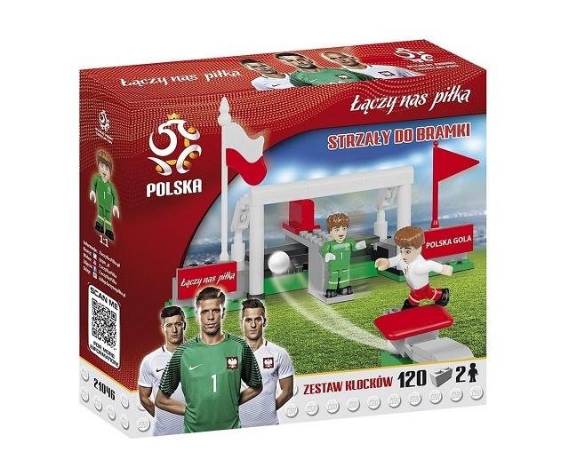Napastnik atakuje blisko pola karnego, Składa się do strzału. Bramkarz w pełnej koncentracji chce powstrzymać przeciwnika. Funkcjonalny zestaw klocków z ruchomą opcją strzelania i ruchomą opcją obrony. Zestaw inspirowany sytuacją bramkową.