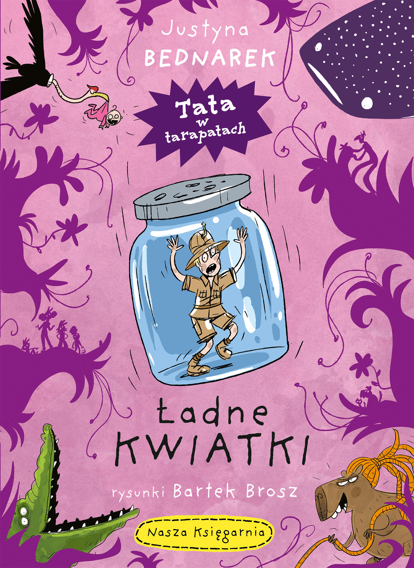 Kiedy ostatni raz widzieliśmy tatę Wieczorka, spadał akurat z dzioba gigantycznej kury wprost w kosmiczną OTCHŁAŃ. Wylądował gdzieś w pobliżu Puszczy Amazońskiej, więc jego bohaterska rodzina znów musi ruszyć na ratunek. Z Koluszek. Nie pytajcie… Sami sprawdźcie, czemu właśnie stamtąd i jaki wpływ na to miała strachliwa natura rakiety kosmicznej. Czas skonstruować kardiotranslator (który przetłumaczy to, co podpowiada najlepszy drogowskaz świata, czyli serce Eugenii Wieczorek) i w drogę! Na przekór żarłocznym morskim stworom i zbzikowanym szamanom. A jaką rolę odegra szlachetna kapibara? O tym dowiecie się już z książki. Justyna Bednarek (ur. 1970), z wykształcenia romanistka, pisarka dla dzieci, autorka prawie 90 książek, w tym "Niesamowitych przygód dziesięciu skarpetek", które weszły do kanonu lektur szkolnych, "Pięciu sprytnych kun", "Babcochy" czy też serii o Dusi i Psinku-Świnku.Za swoje książki dostała wiele nagród literackich (m. in. Warszawską Nagrodę Literacką, nagrodę w konkursie na Najlepszą Książkę Dziecięcą "Przecinek i Kropka", Nagrodę im. Kornela Makuszyńskiego, trzy razy tytuł Książki Roku Polskiej Sekcji IBBY, Nagrodę Żółtej Ciżemki czy też Ferdynanda Wspaniałego).Zanim zaczęła pisać bajki, przez wiele lat pracowała jako dziennikarka, najdłużej – w miesięczniku "Kuchnia". Wtedy pokochała gotowanie, chociaż talent do tego miała zawsze.Gdy była mała, pragnęła zamieszkać w autobusie, w którym mieściłyby się wszystkie potrzebne do życia przedmioty. A także trochę niepotrzebnych. Seria "Tata w tarapatach" jest więc w pewnym sensie spełnieniem marzeń, no bo, jak sama mówi: "jak się pisze, to się to wszystko przeżywa".Justyna mieszka w Warszawie, ma troje dzieci, dwa psy i dwa koty oraz milion wtyków amerykańskich, które skolonizowały świerk pod oknem Małej Be. Bartek Brosz ilustrator, grafik, rysownik prasowy, autor książek dla dzieci, songwriter, twórca muzyki ilustracyjnej do gier komputerowych. Z wykształcenia architekt, ale studia na wydziale Architektury Politechniki Gdańskiej podjął głównie z myślą o zajęciach z rysunku i malarstwa, ponieważ od najmłodszych lat marzył, aby ilustrować książki. Jeszcze w liceum rozpoczął współpracę z "Gazetą Olsztyńską", gdzie publikowano jego pierwsze rysunki, a w czasie studiów został stałym ilustratorem "Dziennika Bałtyckiego". Jest autorem ilustracji do dziesiątek książek i podręczników szkolnych. Swego czasu tworzył też grafikę do przygodowych gier komputerowych dla dzieci z popularnymi postaciami z kreskówek, jak Bolek i Lolek, Koziołek Matołek czy Reksio. Napisał i zilustrował również kilka książek dla najmłodszych, które zostały wydane w Polsce i za granicą. Oprócz rysowania pasjonuje się muzyką. Komponuje i pisze teksty piosenek. Jego pierwszy zespół to trójmiejska formacja Pomidory. Poza nagrywaniem projektów solowych w studiu zbudowanym w szafie gra w grupach The Paperbags, The Waterforge oraz Kretti ' the Little Moles. Wraz z rodziną i kotką Behemotką mieszka na strychu w Gdańsku-Wrzeszczu. Powyższy opis pochodzi od wydawcy