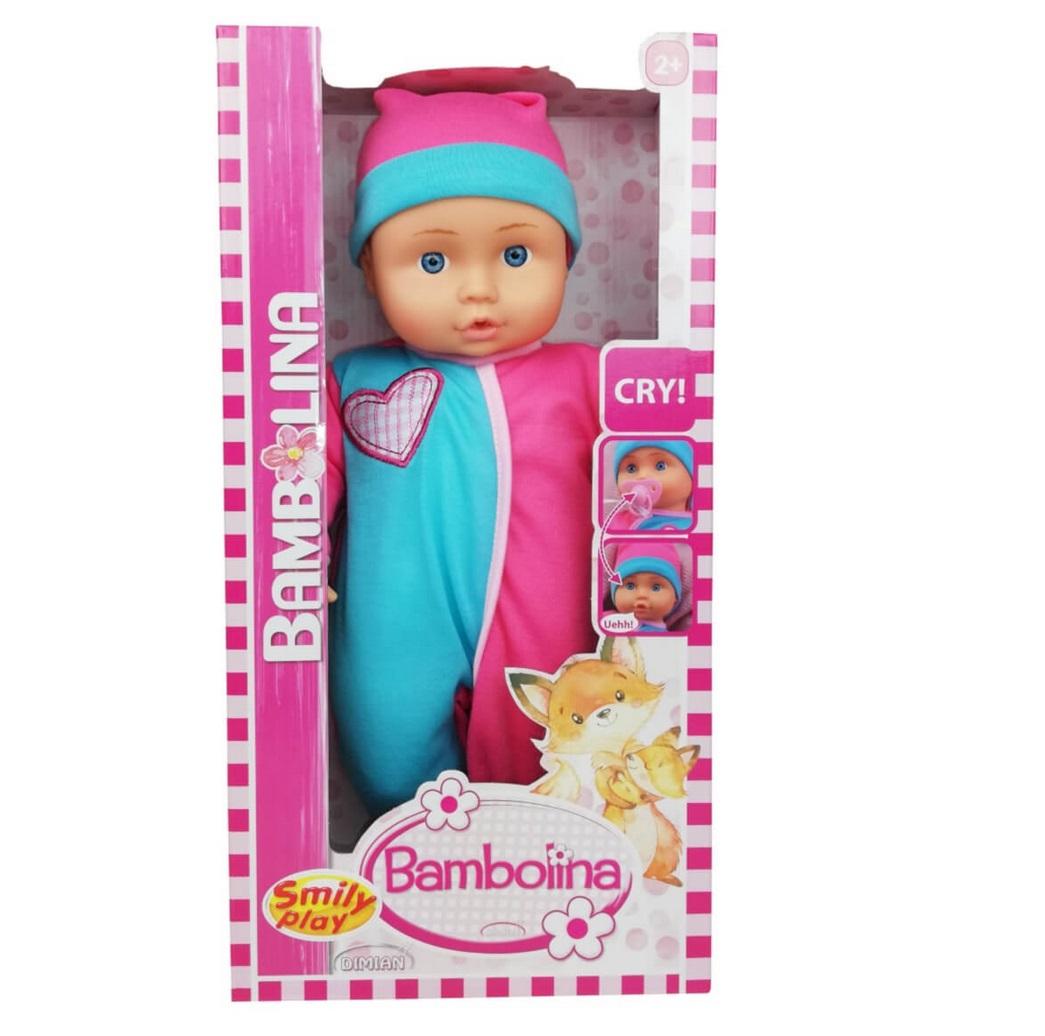 Lalki, to najstarsze znane światu zabawki. Niewątpliwą ich zaletą jest to, że można bawić się nimi wszędzie – zarówno w podróży, w domu, czy wszędzie tam, gdzie dziecko postanowi zabrać swoją lalę. Lala Bambolina wyglądem przypomina prawdziwe dziecko. Jest ubrana w różowe śpioszki i czapeczkę. Ma miękki brzuszek. Lala płacze jak niemowlak, uspokaja się po podaniu smoczka. Jest bezpieczna. Rozwija wrażliwość i opiekuńczość. Została wykonana z miękkiego, przyjemnego w dotyku plastiku. Pobudza wyobraźnię, stając się towarzyszem zabaw. Kołysanie lalki pozytywnie wpływa na rozwój dziecka. Wysokość lali – 36 cm. Baterie 3 x LR44 1.5V - dołączone Wiek 2+