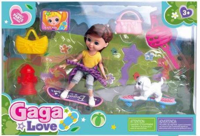 Laleczka 15 cm. Dodatkowe akcesoria: 2 deski, piesek, szczotka, kask, 2 torebki. Produkt nie potrzebuje baterii. Zabawka przeznaczona dla dzieci powyżej 3 roku życia.