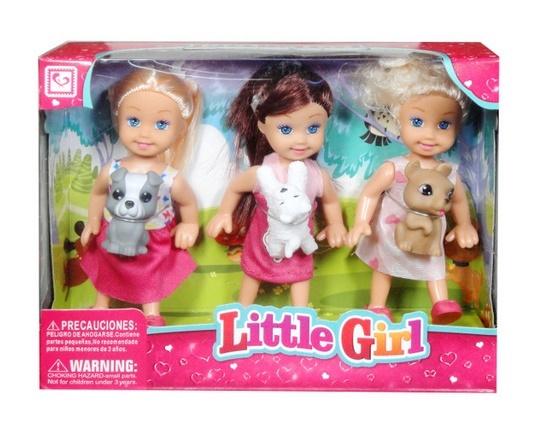 Małe laleczki z pieskami. w opakowaniu znajdują się 3 sztuk lalek.