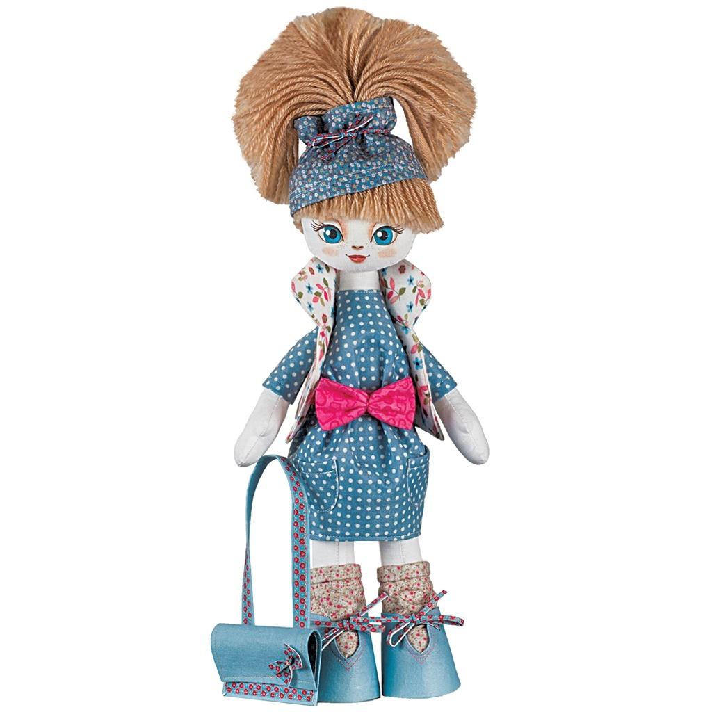 Kukla Nova to zestawy do samodzielnego szycia lalek, zarówno dla początkujących jak i profesjonalistów lubiących kreatywne zabawy. Zestaw zawiera wszystko czego potrzebujesz do przygotowania lalki: tkaninę do uszycia ubrań, butów i akcesoriów, włóczkę do włosów, wypełniacz, wstążki i guziki. Dołączona jest również instrukcja w języku polskim, angielskim i rosyjskim. Rekomendowane dla osób od 14 roku życia, idealne do wspólnego przygotowania przez mamę i córkę. Lalkę można przygotować za pomocą maszyny do szycia lub ręcznie. Lalka Uczennica nosi niebieski komplet: sukienkę, buty, torebkę. Do tego wybiera dodatki z kwiatami. Wie, że w szkole trzeba ubierać się skromnie, ale z klasą. Gotowa lalka ma wysokość 45 cm i ruchome nogi i ręce. Lalka nie stoi samodzielnie.